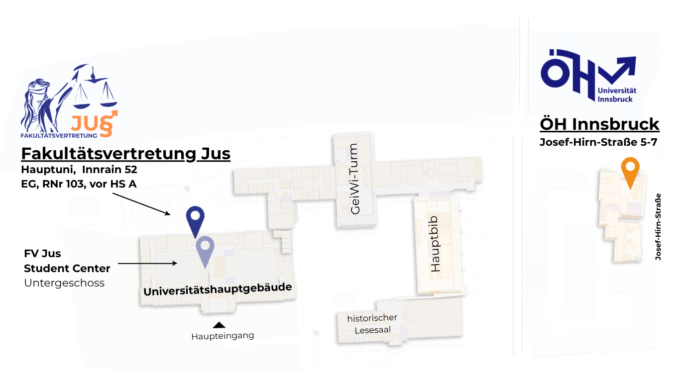 Daneben besteht die Möglichkeit uns per Telefon (+43 512 507 35650 – während den Öffnungszeiten) oder E-Mail (fv-jus@oeh.cc) zu kontaktieren.