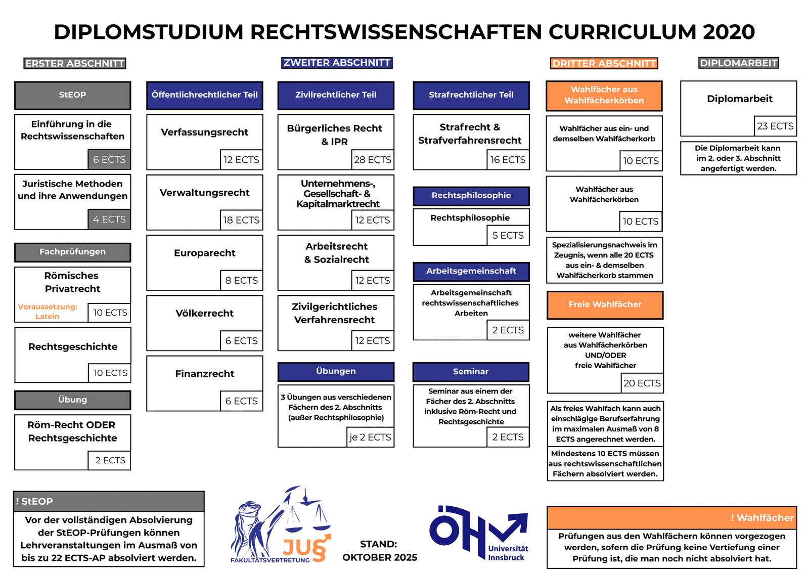 Dem 3. Abschnitt des Diplomstudiums der Rechtswissenschaften sind im Studienplan 2020 drei Bereiche zugeordnet: